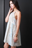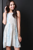 This cute apron tie dye knit fabrication, square neck with skinny shoulder straps, sleeveless design, gather waist, and finished with a mini-length skirt. Partially lined. Accessories sold separately. Made in U.S.A. Self: 55% Cotton, 45% Rayon. 100% Polyester.