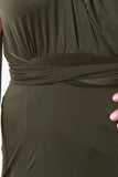 This amazing maxi dress features long surplice sash for multiple style wrap options, high waisted cinched seam, flowing maxi length skirt and double vent slit design at front. Accessories sold separately. 94% Polyester, 6% Spandex.