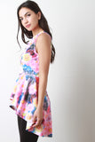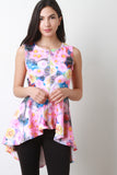 This cute sleeveless top features a knit fabrication, multi floral print photo pattern, rounded neckline, exposed zipper front closure, with a high low hem peplum design. Accessories sold separately. Made in U.S.A. 96% Polyester, 4% Spandex.