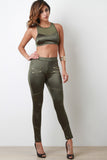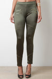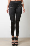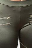 These stretch knit leggings are fitted design, featuring decor front zippers and stitching details. Elasticized waist. Unlined. Accessories sold separately. 85% Polyester. 15% Elastane.