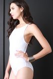 This casual bodysuit features a ribbed knit fabrication, boat neckline, sleeveless fit, and square back detail. Finished with a double snap button closure at crotch. Accessories sold separately. 96% Rayon, 4% Spandex.