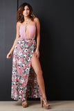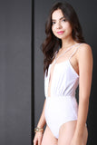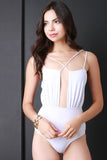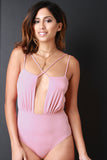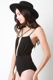 This daring bodysuit features a soft stretchy knit, front center open panel, twisted knot detailed straps, and open back construction. Finished with a double snap button closure at crotch. Accessories sold separately. Made in U.S.A. 95% Polyester, 5% Spandex.