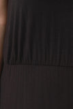 This plus size maxi dress features a stretchy jersey knit fabrication with wide striped accent, sleeveless design, elasticized waistline, and maxi-length hemline. Accessories sold separately. Made in U.S.A. 95% Rayon, 5% Spandex.