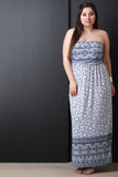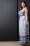 This plus size dress features a strapless design, empire waist, floral print knit fabrication, and a maxi length hem. Accessories sold separately. 95% Polyester, 5% Spandex.