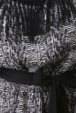This plus size dress features a printed woven knit fabrication, round neckline with chains and fringe details, short sleeves, side pockets, and self-tie waist sash. Accessories sold separately. 100% Polyester.
