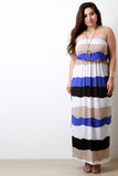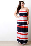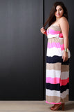 This plus size dress features a multicolor stripes print pattern, strapless tube top, empire waist construction, and maxi-length hemline. Accessories sold separately. Made in U.S.A. 90% Polyester, 10% Spandex.