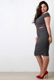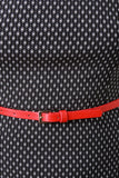 This vintage plus size dress features a printed stretchy knit fabric, off the shoulder sweetheart neckline, short sleeves fit, and includes a vegan leather belt. Accessories sold separately. Made in U.S.A. Self: 100% Rayon. Lining: 100% Polyester.