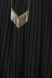 This plus size dress features an elasticized off-the-shoulder neckline with an adjustable shoulder straps, long bell sleeves design, popover silhouette, and finished with side slits. Accessories sold separately. 50% Polyester, 50% Rayon.
