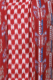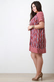 This plus size dress features mixed pattern, v-neckline, fringe tassel strings, short sleeve, and midi length. Accessories sold separately. 100% Rayon.
