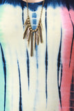 This plus size tank dress features a soft jersey knit with tie dye coloring, scoop neck, sleeveless design, and curved hem. Accessories sold separately. Made in U.S.A. 95% Rayon, 5% Spandex.
