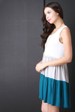 This sleeveless dress features a round neckline, color block flare skirt, and crochet trimming accent at seams. Accessories sold separately. 97% Rayon, 3% Spandex.