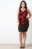 This plus size sleeveless mini dress features a sweetheart neckline with v-boning, floral applique pattern top with peplum detail at waist, and contrasting mini skirt. Partially lined. Accessories sold separately. 96% Polyester, 4% Spandex.