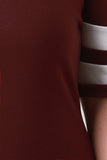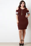 This plus size dress , features cold shoulders and contrast striped short sleeves. Soft knit fabrication, unlined. Round neckline. Accessories sold separately. Made in USA. 86% Polyester. 10% Rayon. 4% Spandex.