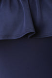 This casual plus size dress features a smooth stretchy knit fabric, elasticized off the shoulder neckline with a layered ruffle detail, and maxi-length hemline. Accessories sold separately. Made in U.S.A. 95% Polyester, 5% Spandex.