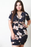 This plus size mini dress features a soft stretch fabrication with floral prints, short sleeves, and sculpted bodycon construction. Finished with an adjustable zipper neckline. Accessories sold separately. Made in U.S.A. 96% Polyester, 4% Spandex.