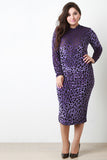 This eye-catching plus size dress features a burn-out velvet and mesh fabric in broken tile pattern, mock neckline, and longsleeve construction. Finished with a midi-length hemline, rear exposed zipper fastener, and partially lined. Accessories sold separately. Made in U.S.A. 90% Polyester, 10% Spandex.