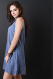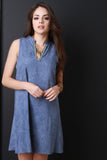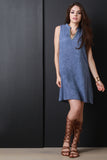 This dress features mineral wash fabric, v-neckline with tribal pattern trim, and relaxed fit. Accessories sold separately. Made in U.S.A. 100% Rayon.