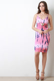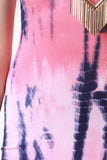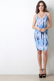 This beautiful dress features a jersey knit fabrication, tie dye print, v-neckline, spaghetti straps, and crisscross back detail. Finished with a midi length hemline. Accessories sold separately. Made in U.S.A. 95% Polyester, 5% Spandex.