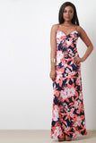 This maxi dress features a knotted bodice, spaghetti straps, soft knit fabrication, straight cut skirt and a maxi length hemline. Accessories sold separately. Made in U.S.A. 95% Polyester, 5% Spandex.