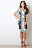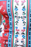 This beautiful dress features a porcelain-style floral print design, off the shoulder neckline, short sleeves construction, and midi-length hemline. Accessories sold separately. 95% Polyester, 5% Spandex.