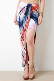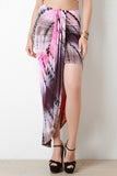 This maxi skirt features a high rise, hidden elasticized waist, asymmetrical tulip design, mini skirt underlay, and tie dye pattern print. Accessory sold separately. Made in U.S.A. 95% Rayon, 5% Spandex.