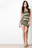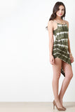 This bodycon dress features soft jersey knit, stripe tie dye, spaghetti straps, ruched side, and asymmetrical hemline. Accessories sold separately. Made in USA. 96% Rayon, 4% Spandex.