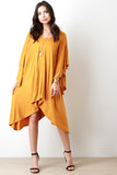 This casual dress features a jersey knit fabric, dropped shoulder seams, ruffle sleeves, and sharkbite hem. Finished with a round neck and v-back detail. Accessories sold separately. 96% Bamboo Viscose, 4% Spandex.