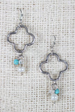 These cute earrings feature oxidized silver finish, a quatrefoil charm, a cluster of multicolored beads and a french hook back.