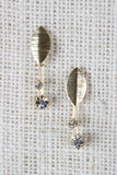 These cute earrings feature textured leaf shapes with two drop down rhinestones, finished with a post back.