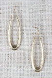 These simple earrings feature a dangle design, oval shape, brushed metal hammer detail, and fish hook backs.