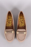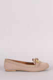 These comfy loafer flats feature a round toe silhouette with double-stranded ornament embellishment, lightly padded insole, and easy slip-on style.