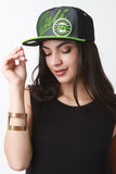 This trendy snapback cap features mesh overlay, "Cali" text and patch at front, five panel design, and flat bill.