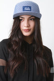 This trendy snapback cap features a polka dot print with California bear patch sewn on, five panel design, and flat bill.