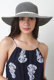 This summer hat is floppy hat silhouette with a straw design. Features a decor braided bow tie string. Finished with an interior ribbon lining.