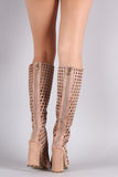 These feature a perforated vegan suede upper, peep toe silhouette, and chunky wrapped heel. Finished with cushioned insole and rear zipper closure for easy on/off.