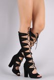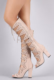 These stunning lace up closure. Also features a peep toe silhouette, chunky wrapped heel, and full-length rear zipper closure. Finished with cushioned insole for comfort.
