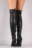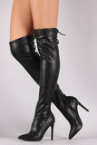 These pointy toe silhouette, back lace-up design, single sole, and stiletto heel. Finished with a cushioned insole and partial side zipper closure for easy on/off.