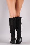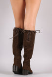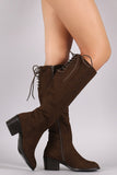 These modern-chic boots feature a rounded toe, back lace-up design, stitching accents, and blocky stacked heel. Finished with a cushioned insole, soft faux fur lining, and full-length side zipper closure for easy on/off.