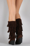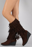 These fashionable fringe detail on shaft, lug sole platform, and wedge heel. Finished with cushioned insole, smooth lining, and side zipper closure for easy on/off.