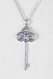 This lovely necklace features a cable link chain, Cubic Zirconia encrusted key shaped pendant, finished with an adjustable lobster hook closure.