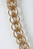 This necklace features a high polished metallic finish, inter-woven links, cable chain, matching earrings, and an adjustable lobster claw closure.