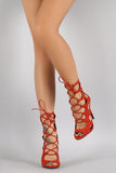 This fashionable heel features a caged cutout design vamp, peep toe silhouette, corset-style lace up detail, and stiletto heel. Finished with lightly padded insole and rear zipper closure for easy on/off.
