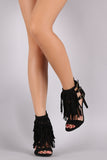 This chic fringe decor, and wrapped stiletto heel. Finished with lightly padded insole and back zipper closure for easy on/off.