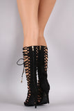 This unique lace-up front, and wrapped stiletto heel. Finished with lightly padded insole and convenient back zip closure.