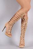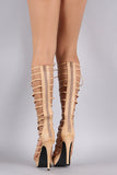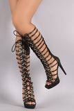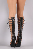 This stunning lace-up front design. Finished with tribute platform, wrapped stiletto heel, lightly padded insole, and convenient back-zip closure.