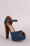 Bamboo Denim Peep-Toe One Band Counter Platform Heel