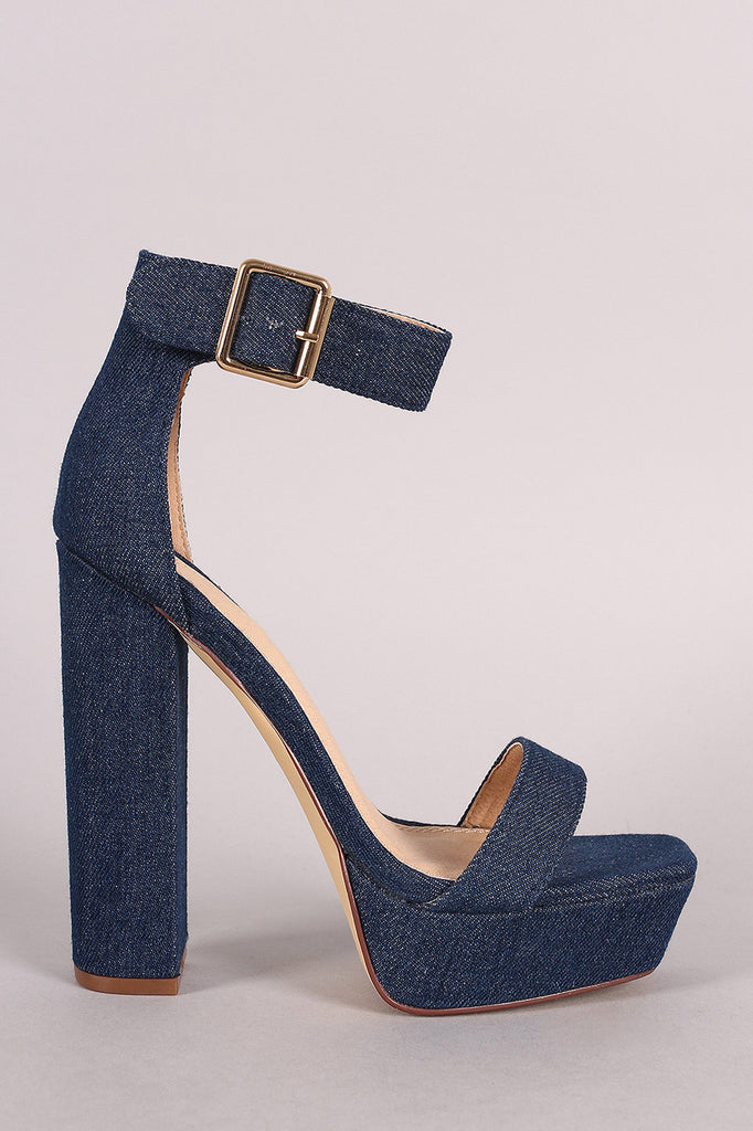 This trendy denim upper, square open toe silhouette, chunky platform, and wrapped heel. Finished with lightly padded insole and adjustable ankle strap with buckle fastening.