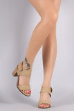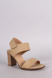 This casual heel features an open toe silhouette, one band across vamp, and chunky stacked heel. Finished with an ankle cuff with hook and loop closure.