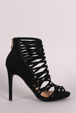 Anne Michelle Nubuck Caged Peep Toe Stiletto Heel
