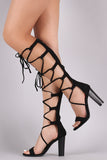 Bamboo Suede Braided Lace-Up Chunky Heel